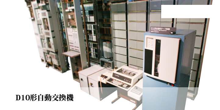![]() D10形自動交換機![]() ![]() D10形自動交換機は、高性能な処理装置を持つ、プログラム制御方式の電子交換機です。それまでのクロスバ交換機に比べ、小形化と大容量化を同時に実現しました。 また、ソフトウェアの変更で新たなサービスに容易に対応できるようにしたことで、その後の電話サービスの高度化・多様化に大きく貢献しました。さらに移動体通信への機能も有し、自動車電話サービスの提供に大きな役割を果たしたのです。 電子交換機の研究開発は、1964年から当時の日本電信電話公社電気通信研究所が中心に、交換機製造会社との共同研究で進められました。1972年には、東京の銀座局など4局でD10形自動交換機によるサービスが開始され、その後順次全国に展開されました。 D10形自動交換機は、全国の加入者線交換機が全てディジタル化される1997年までの四半世紀にわたり、高度化する電話サービスの担い手として活躍しました。 |