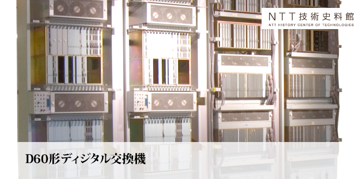 ![]() D60形ディジタル交換機![]() 初めてデジタル化された商用交換機1982年に導入された「D60形ディジタル交換機」は、交換機能すべて(制御部・通話路スイッチ部)のデジタル化を実現した交換機で、電話局間をつなぐ中継用デジタル交換機として、交換機の小型化・収容数増の実現、ネットワークの大容量化・経済化に貢献しました。 D60形ディジタル交換機開発の背景1890年に東京-横浜間にて手動交換機を用いて始まった電話交換業務では、増大する需要に応えるため、自動交換機であるステップバイステップ交換機を1926年に導入しました。その後、クロスバ交換機の導入により、遠方へも即時に電話がつながる広域自動即時化が実現し、国内に広く電話が普及することとなりました。 電子交換機の研究開発が始まった1950年代からデジタル化の検討は行われていましたが、当時は経済性の観点から、交換機の交換機能すべてをデジタル化するには至りませんでした。その後、1970年代の集積回路(LSI)技術・時分割交換技術などの発展を背景に、アナログ部品で構成されていた通話路スイッチ部を含め、中継交換機内の交換機能すべてをデジタル化した「D60形ディジタル交換機」を開発し、日本初のデジタル電子交換機として商用化しました。 ![]() (1) 集積回路 (LSI) 技術多数の素子(電子部品)を一つの半導体チップにまとめたもので、1970年代に集積度が飛躍的に向上しました。また、製造技術の進歩により量産化・高信頼化が進み製品価格も下がったため、「D60形ディジタル交換機」への実用が可能となりました。 (2) 時分割交換技術符号化された音声信号や音声以外のデジタル信号を、時間をずらして送受信することにより交換機能を実現する技術です。「D60形ディジタル交換機」では、LSIを用いた「時分割スイッチ」を組み入れています。 |
