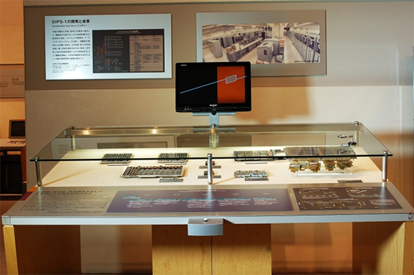 ![]() 1954年パラメトロンが発表されると同時に、電電公社電気通信研究所(現 NTT研究所)は並列演算方式による実用計算機の試作に着手し、1957年に我が国最初のパラメトロン計算機MUSASINO-1を完成させました。この試作機には、パラメトロン約5,400個が使用され、約1,500万円の費用がかかりました。 MUSASINO-1は、研究所内の計算サービスに使用されていました。けれども、手作りの試作機であったため、ハードウェア障害も多く、保守運用に多くの労力が必要でした。そこで、1960年、まったく同じ論理構成で、電子交換機用に実用化された眼鏡形パラメトロンを使用した商用機MUSASINO-1Bを完成させました。 同機は、後に富士通信機製造(現富士通)により、科学計算用中型機FACOM 201として発売され、まさに、戦後日本におけるコンピューター開発の原点となったのです。 ![]() 情報処理学会 情報処理技術遺産公式HP http://museum.ipsj.or.jp/heritage/musasino_1b.html ![]() ![]() 1968年、電電公社は、データ通信サービスの急速な普及に対応するため、ネットワークで使う大型コンピュータの早期実現をめざし、DIPS(Dendenkosha Information Processing System)開発計画を開始しました。国産汎用機メーカとの共同研究体制をとり、標準化、オンライン用電算機システムの実用化等を主なねらいとしていました。DIPSは、データ通信サービスや社内情報処理システムに広く用いられ、本体を始めとした通信制御系、ファイル系、システム制御系、ソフトウエアなどによって構成されています。 ![]() 情報処理学会 情報処理技術遺産公式HP http://museum.ipsj.or.jp/heritage/DIPS-1.html ![]() ![]() DIPS4150形磁気ドラム装置は、DIPS-1の高速補助記憶装置として、1968年に主記憶装置(磁気コアメモリ)と磁気ディスク記憶装置のアクセスギャップを埋めるためのバッファメモリとして開発された。記憶容量4メガバイト/装置、平均アクセス時間10.3ミリ秒、情報転送速度2.2メガバイト/秒で、当初4キロバイト/セクタ、トラック当たり10セクタであったが小単位の記憶サイズに適合させるため、256バイト/セクタ、トラック当たり64セクタの改セクタ磁気ドラム装置が開発されDIPS-1のバッファメモリとして、多くのシステムに導入された。 ![]() 情報処理学会 情報処理技術遺産公式HP http://museum.ipsj.or.jp/heritage/DIPS4150.html ![]() ![]() ![]() NTT技術史料館3階 技術をさぐる「Ⅲコンピュータとモバイルのひろば」および「H 文字・画像の通信とサービスの技術」の一部が、"歴史的なコンピュータの展示エリア" として「分散コンピュータ博物館」に認定されました。 ![]() 情報処理学会 分散コンピュータ博物館公式HP http://museum.ipsj.or.jp/satellite/NTT_gijyutu.html |